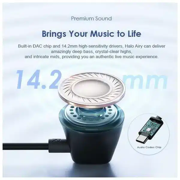 Puce DAC intégrée et pilotes haute sensibilité de 14 mm, Halo Airy peut fournir des basses incroyablement profondes, des aigus cristallins et des médiums complexes, vous offrant une expérience musicale live authentique.
